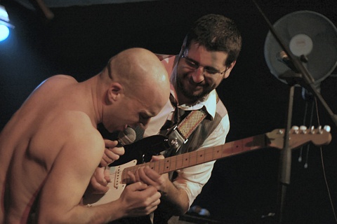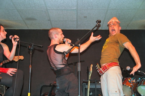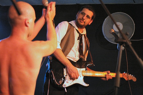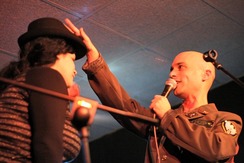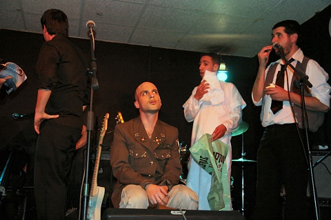 סינרומן מוטי פנאן תמונות מתוך "מופע החיים של מוטי פנאן" במרתף 10, חיפה 7.2.2008 צילם וטיפל: גרבולון נותנים בראש הממשלה: ק.ג.ב מופע השקה אקסטרוורטי ומולטי מדיאלי: 14.2.2008 בארבי ת"א 22:00 הכתבה מ Time out שהתפרסמה ביום חמישי הולדת מוטי פנאן ![]() ![]() ![]() "מופע החיים גאה לארח את מר גוטל בוטל מוכרחים להיות שמח חייבים להתאזרח נשק כימי לפתח תנו לרגש לנצח" ![]() "ושום חומת מגן לא תעצור את כל הרגש שיפרוץ" ![]() "לך לך מוטי צעד בנתיב ללא סוף קום מוטי עזוב את השבט ואת כותל זה אני הוא מיסטר גוטל לך מכאן ואל תשוב כי לא טוב לחיות בכלוב" ![]() ![]() ![]() "השנים חלפו ומוטי אתן. מילד היה לנער, מנער לנערה ושוב לנער. עד שלבסוף נקרא לשרת את מולדתו האהובה. הוא השאיר מאחור את כותל הסרבנית, בת בני עקיבא קשת העורף והנרתיק ויצא לדפוק את מי שבאמת מגיע לו". ![]() מוטי, שטן משה רבינו ויובל בר און עם צ'לו חללי ![]() "אני כמו כלב"... ![]() ![]() ![]() מוטי פנאן פוגש את יובל בר און ![]() ![]() ![]() ![]() ![]() ![]() "פעל אל תוך היוניברס, מוטי תגאל את היוניברס, מוטי" ![]() מוטי פוגש את הגורו צוזאבא ![]() ![]() ![]() ![]() "וכך התאהבו השפן והקיפוד, עברו לגור ביחד, וכל חיות היער היו נעמדות מחוץ לביתם וקוראות לעברם: "הומואים"!" ![]() "מוטי פנאן, ראש שבט צופי רמת גן לא בזבז את זמנו לריק ולא נשאר אפילו דקה נוספת בשאנטיבאבלנד. הכהן הגדול של שאנטיבאבאלנד, הגורו צוזאבא, הציע לו להתחתן עם כל נשות שאנטיבאבאלנד העליזות, אך קולה של כותל החסודה הדהד באוזניו של ידידינו, "את מי אתה אוהב את מי אתה אוהב את מי אתה אוהב?"... הוא שלח לעצמו צו שמונה ועלה על טיסה 752 של חברת לופטהנזה חזרה לארץ הקודש". נתב"ג 2000 – מוטיב השיבה המאוחרת ![]() ![]() ![]() ![]() ![]() ![]() ![]() ![]() עומר לבון דלוק ![]() גידי מושך תשומת לב ושוב גונב את ההצגה לק.ג.ב ![]() "אנחנו בפוסט מודרניזם, פוסט אופיס, פוסט מורטם". ![]() הענקת כובע גוטל ליקירת הגוטל – הילה גושן. ![]() ![]() "מי שדם שפך / ואת נפשו הכריח / לתת גם לה מקום לחיות בצד האל מי שעל עצמו וויתר / וגם שיקר וגם גימבל יקום מחר בבוקר / ינסה להגמל יגיד "היה כדאי"". ![]() לאוניד והקלרינט הירוק. (בתקופות יובש נהוג לאלץ את לאוניד לנגן בקלרינט הירוק, או אז נפתחים שערי השמיים ויורד גשם דשא). ![]() "תתבעו אותי" ![]() "היא קוראת בשביס זינגר".... ![]() טל וגנר האריה ![]() ![]() ![]() ![]() ויש לנו כוכבת ![]() "היא גרה בזמנהוף, ויש לה פולסוואגן..." ![]() ![]() דוגמן לבנים ![]() ![]() ![]() ![]() ![]() ![]() דוגמן אמיתי ![]() מתופף אמיתי ![]() |