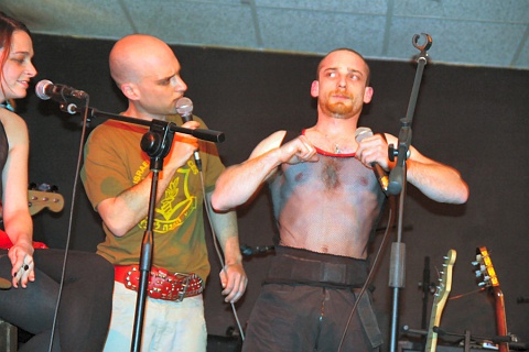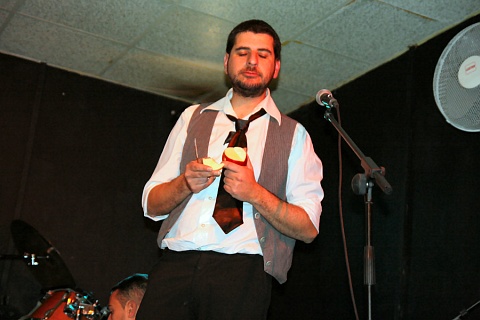 סינרומן מוטי פנאן תמונות מתוך "מופע החיים של מוטי פנאן" במרתף 10, חיפה 7.2.2008 צילם וטיפל: גרבולון נותנים בראש הממשלה: ק.ג.ב מופע השקה אקסטרוורטי ומולטי מדיאלי: 14.2.2008 בארבי ת"א 22:00 הכתבה מ Time out שהתפרסמה ביום חמישי הולדת מוטי פנאן ![]() ![]() ![]() "מופע החיים גאה לארח את מר גוטל בוטל מוכרחים להיות שמח חייבים להתאזרח נשק כימי לפתח תנו לרגש לנצח" ![]() "ושום חומת מגן לא תעצור את כל הרגש שיפרוץ" ![]() "לך לך מוטי צעד בנתיב ללא סוף קום מוטי עזוב את השבט ואת כותל זה אני הוא מיסטר גוטל לך מכאן ואל תשוב כי לא טוב לחיות בכלוב" ![]() ![]() ![]() "השנים חלפו ומוטי אתן. מילד היה לנער, מנער לנערה ושוב לנער. עד שלבסוף נקרא לשרת את מולדתו האהובה. הוא השאיר מאחור את כותל הסרבנית, בת בני עקיבא קשת העורף והנרתיק ויצא לדפוק את מי שבאמת מגיע לו". ![]() מוטי, שטן משה רבינו ויובל בר און עם צ'לו חללי ![]() "אני כמו כלב"... ![]() ![]() ![]() מוטי פנאן פוגש את יובל בר און ![]() ![]() ![]() ![]() ![]() ![]() "פעל אל תוך היוניברס, מוטי תגאל את היוניברס, מוטי" ![]() מוטי פוגש את הגורו צוזאבא ![]() ![]() ![]() ![]() "וכך התאהבו השפן והקיפוד, עברו לגור ביחד, וכל חיות היער היו נעמדות מחוץ לביתם וקוראות לעברם: "הומואים"!" ![]() "מוטי פנאן, ראש שבט צופי רמת גן לא בזבז את זמנו לריק ולא נשאר אפילו דקה נוספת בשאנטיבאבלנד. הכהן הגדול של שאנטיבאבאלנד, הגורו צוזאבא, הציע לו להתחתן עם כל נשות שאנטיבאבאלנד העליזות, אך קולה של כותל החסודה הדהד באוזניו של ידידינו, "את מי אתה אוהב את מי אתה אוהב את מי אתה אוהב?"... הוא שלח לעצמו צו שמונה ועלה על טיסה 752 של חברת לופטהנזה חזרה לארץ הקודש". נתב"ג 2000 – מוטיב השיבה המאוחרת ![]() ![]() ![]() ![]() ![]() ![]() ![]() ![]() עומר לבון דלוק ![]() גידי מושך תשומת לב ושוב גונב את ההצגה לק.ג.ב ![]() "אנחנו בפוסט מודרניזם, פוסט אופיס, פוסט מורטם". ![]() הענקת כובע גוטל ליקירת הגוטל – הילה גושן. ![]() ![]() "מי שדם שפך / ואת נפשו הכריח / לתת גם לה מקום לחיות בצד האל מי שעל עצמו וויתר / וגם שיקר וגם גימבל יקום מחר בבוקר / ינסה להגמל יגיד "היה כדאי"". ![]() לאוניד והקלרינט הירוק. (בתקופות יובש נהוג לאלץ את לאוניד לנגן בקלרינט הירוק, או אז נפתחים שערי השמיים ויורד גשם דשא). ![]() "תתבעו אותי" ![]() "היא קוראת בשביס זינגר".... ![]() טל וגנר האריה ![]() ![]() ![]() ![]() ויש לנו כוכבת ![]() "היא גרה בזמנהוף, ויש לה פולסוואגן..." ![]() ![]() דוגמן לבנים ![]() ![]() ![]() ![]() ![]() ![]() דוגמן אמיתי ![]() מתופף אמיתי ![]() |